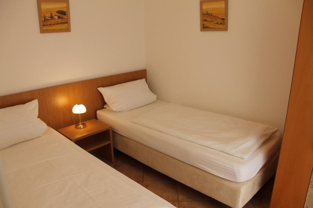 - ein Schlafzimmer mit zwei Einzelbetten (90x200) als Doppelbett zusammenstellbar
